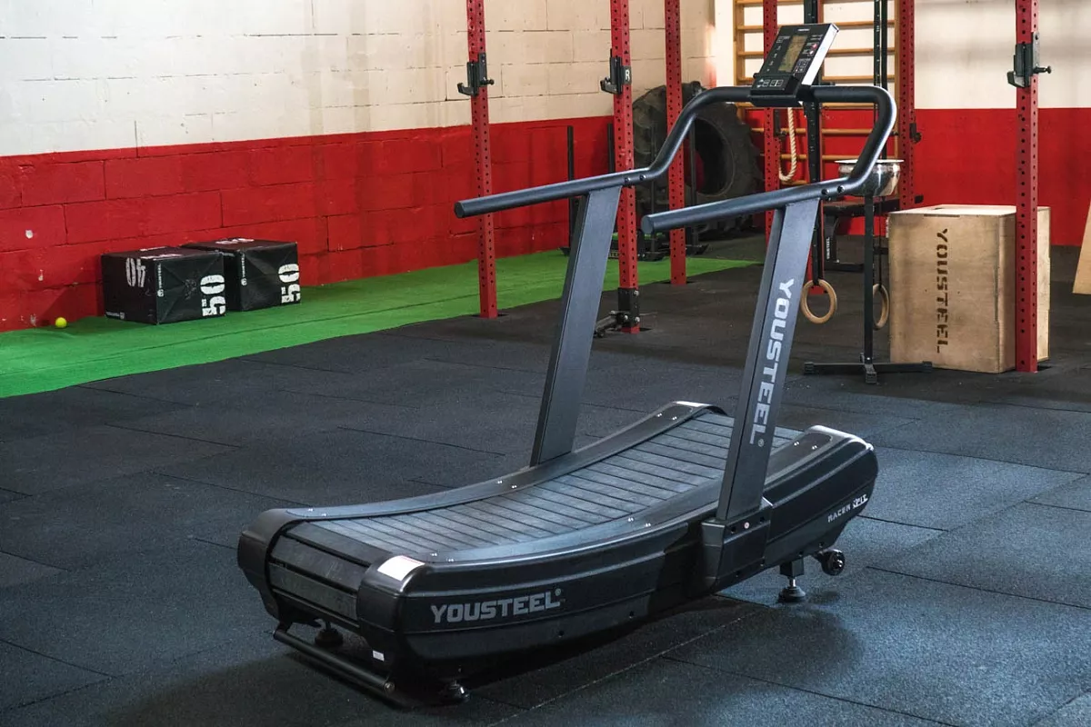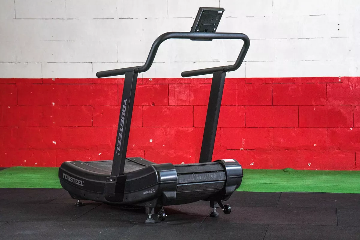 Механическая беговая дорожка YOUSTEEL RUNNER — высококлассная беговая дорожка, задействующая только силу атлета без вспомогательных средств, она приходит в движение только за счет движения самого атлета. В дорожке нет двигателя и она не требует подключения к электричеству. Габаритные размеры 1665х905х1600мм, ширина полотна для бега 433мм. Вес изделия 121кг.