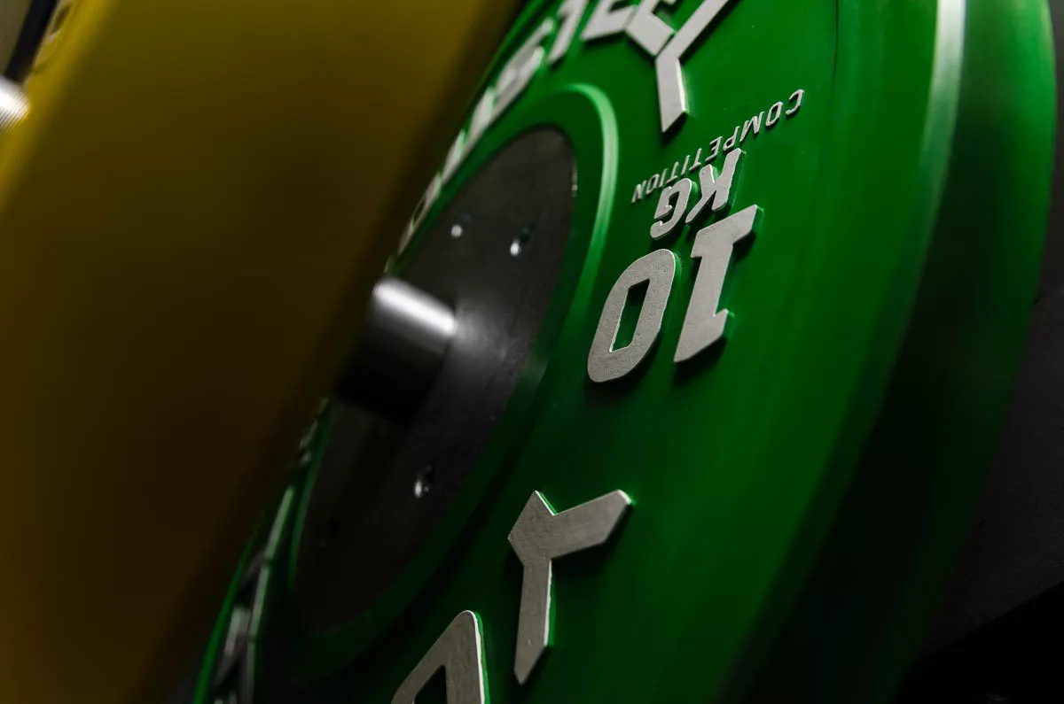 Отличительной особенностью этих блинов является невероятно малая погрешность по весу — всего 0,1%. Такая погрешность позволяет использовать эти диски для проведения соревнований по тяжелой атлетики. В отличии от тренировочных каучуковых дисков, мы использовали металлический диск в центре блина. Это позволило сделать диски тоньше, соответственно, их больше поместится на олимпийский гриф. Для простоты ориентации диск цветной.