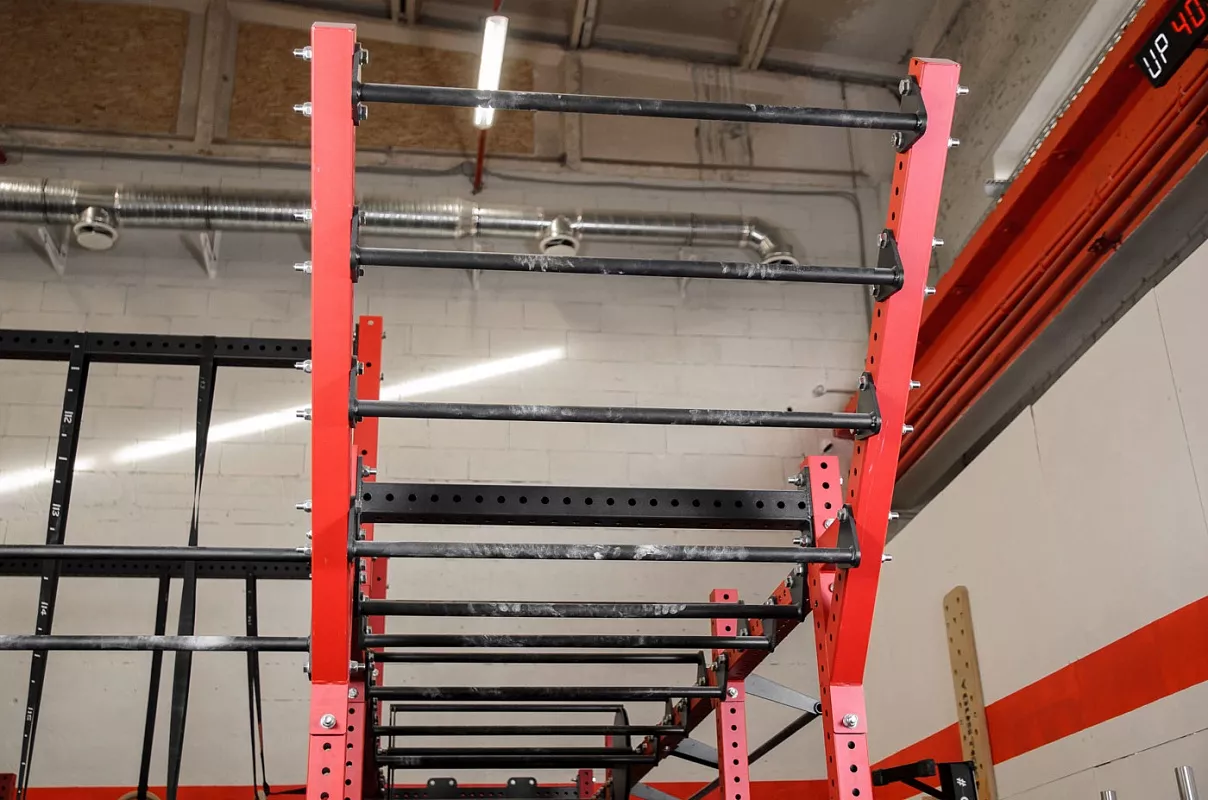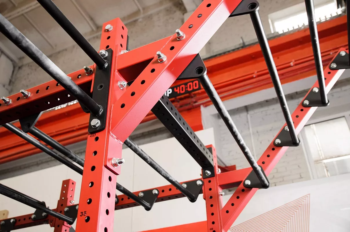 ВНИМАНИЕ! Для вашей безопасности Monkey Bar необходимо устанавливать только на закрепленные на анкерные болты стойки рамы.