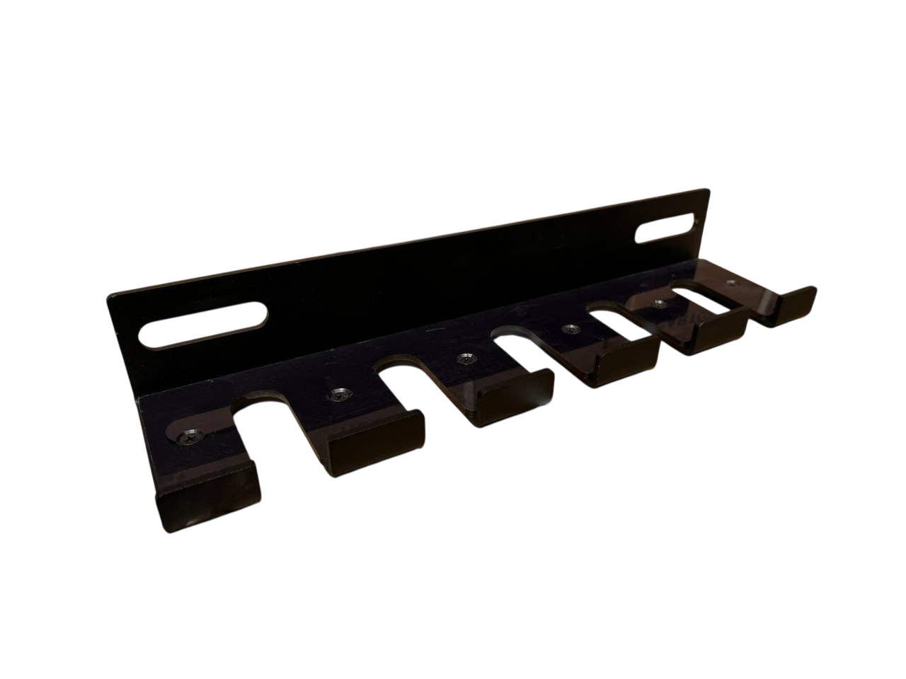 Настенный кронштейн для вертикального хранения ПЯТИ грифов — эффективное решение, с точки зрения организации пространства. Прикрепив его на стену один раз, вы сможете разместить пять грифов сэкономив пространство, а наличие ударопрочного пластика в посадочных гнёздах обеспечит защиту от повреждений. Размер изделия 480х130х75мм. Вес 3кг.