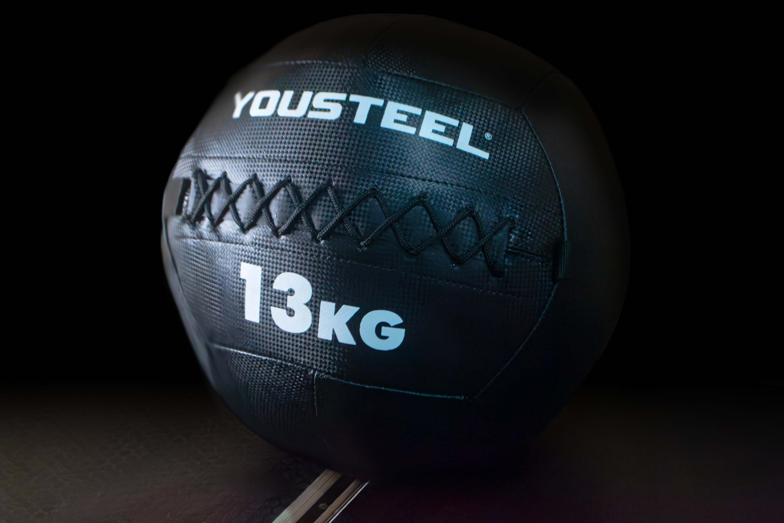 Медбол представляет собой утяжеленный мяч, диаметром 355мм и весом 13кг. Оболочка мяча выполнена из износостойкого ПВХ, которое обеспечивает оптимальное сцепления с ладонями занимающихся и предотвращает выскальзывание из рук, даже если вы вспотели. Для простоты ориентации каждый снаряд имеет цифровое обозначение веса и цветную вставку. Каждый шов прошивается нейлоновой нитью, что обеспечивает повышенную надёжность. Уникальность наших мячей в том, что мы используем систему «скорлупы» внутри. Под оболочкой из ПВХ находится мягкий слой, который служит для предотвращения смещения центра тяжести, это происходит за счет концентрации тяжелых частиц набивки в самом центре ядра «скорлупы» мяча.