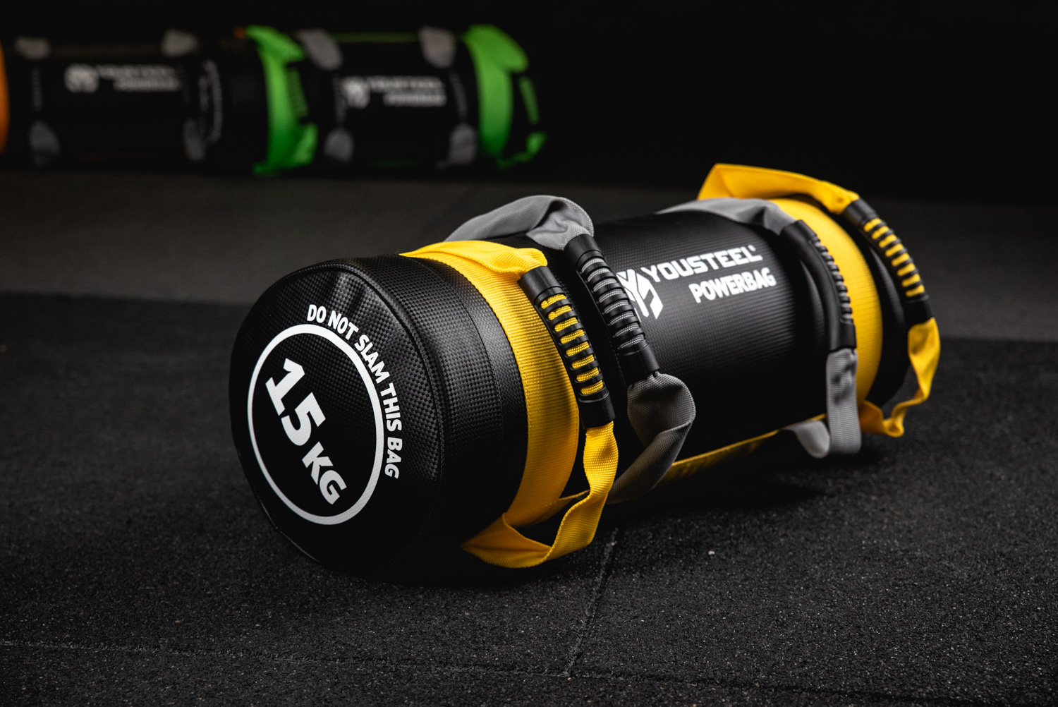 Отличный снаряд для отработки различных движений с отягощением, альтернатива SANDBAG, но только не без минусов в виде вечно высыпающегося песка. Тренировочный мешок поставляется сразу в готовом виде и не требует дополнительного наполнения внутренностей. Ввиду компактности снаряда, а также наличия нескольких пар ручек, пауэрбэг сильно разнообразит тренировки и даст возможность использовать его для тренировки как в зале так и дома. По сути, пауэрбэг представляет из себя прочный спортивный мешок (сумку), с 4 ручками для хвата. Вес снаряда 15кг. Длина: 550мм. Диаметр 220мм.
