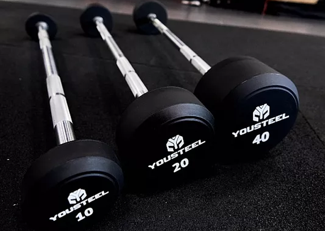 Набор фиксированных полиуретановых штанг, весом от 10 до 30 килограммов, с шагом в 5 килограммов — отлично подойдет для оснащения зоны силовых и функциональных тренировок.