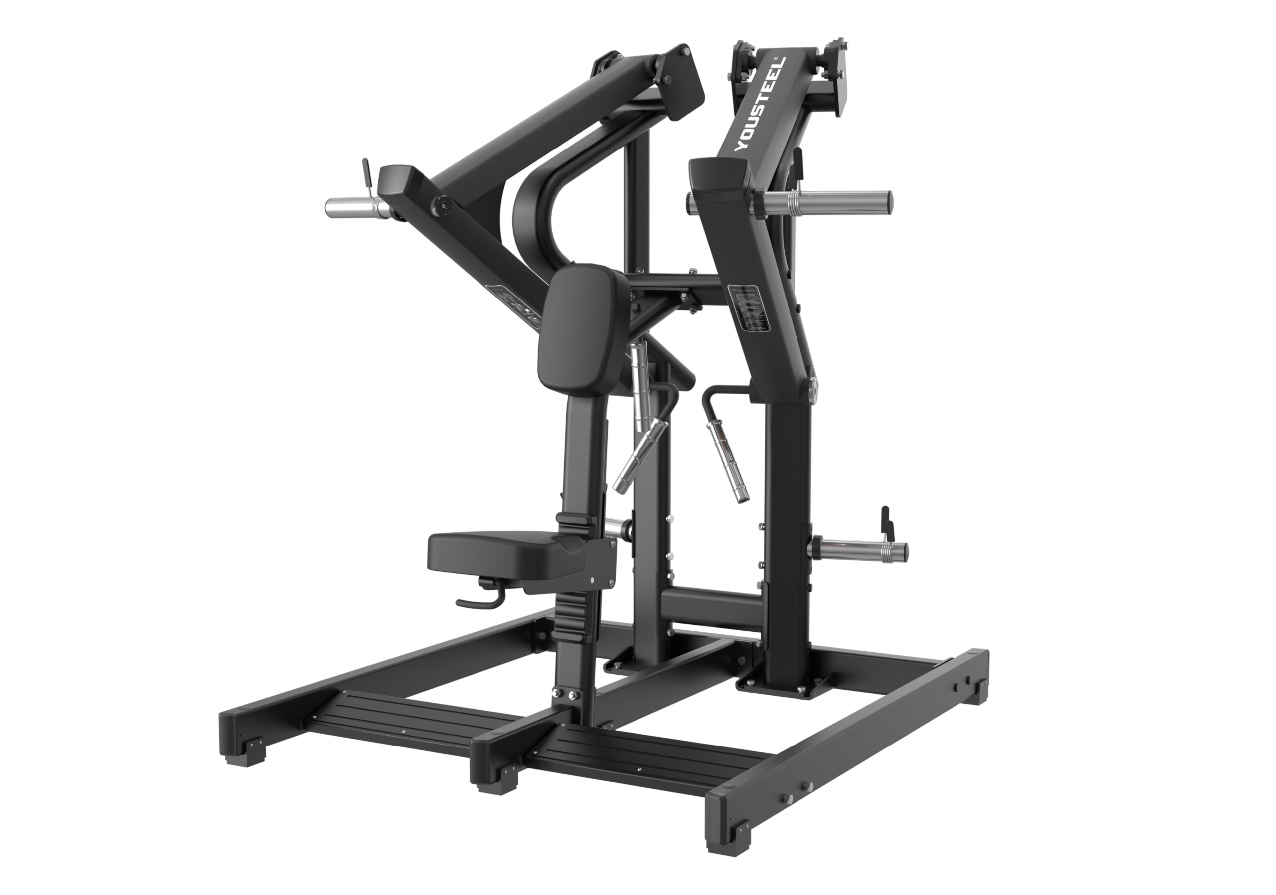 Нижняя гребная тяга — это профессиональный тренажер нагружаемый дисками. Поможет проработать широчайшие мышцы спины, а также включит в работу трапециевидные и задние дельтовидные мышцы. Независимое движение рычагов моделирует естественную траекторию движения и позволяет работать как двумя, так и одной рукой. Рукояти из алюминия имеют насечку для надежного хвата. На центральной части рамы расположена рукоять для возможности тяги одной рукой. Каркас выполнен из толстостенного стального профиля 3мм и сварен на современном лазерном оборудовании. Удобное сиденье из пенополиуретана обтянуто искусственной кожи и имеет трещоточный механизм для быстрой регулировки по высоте. Для фиксации ног, под сиденьем, предусмотрена широкая анти скользящая платформа-упор. Два кронштейна для хранения дисков под посадочный диаметр 50мм. Втулки кронштейнов для дисков расположены под небольшим углом, для предотвращения скатывания дисков во время работы и хранения. Резиновые амортизаторы на рычагах предотвращают повреждение покрытия при резком опускании рычагов и смягчают конечную точку выполнения упражнения. Максимальная весовая нагрузка 300кг.