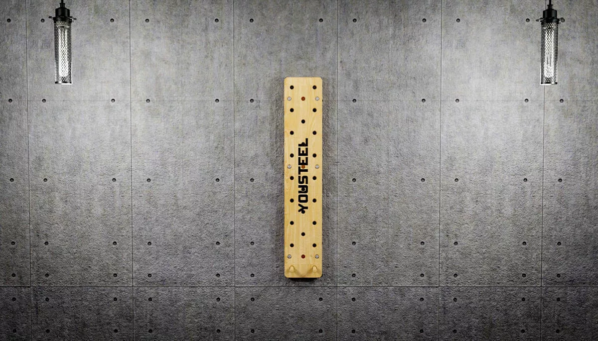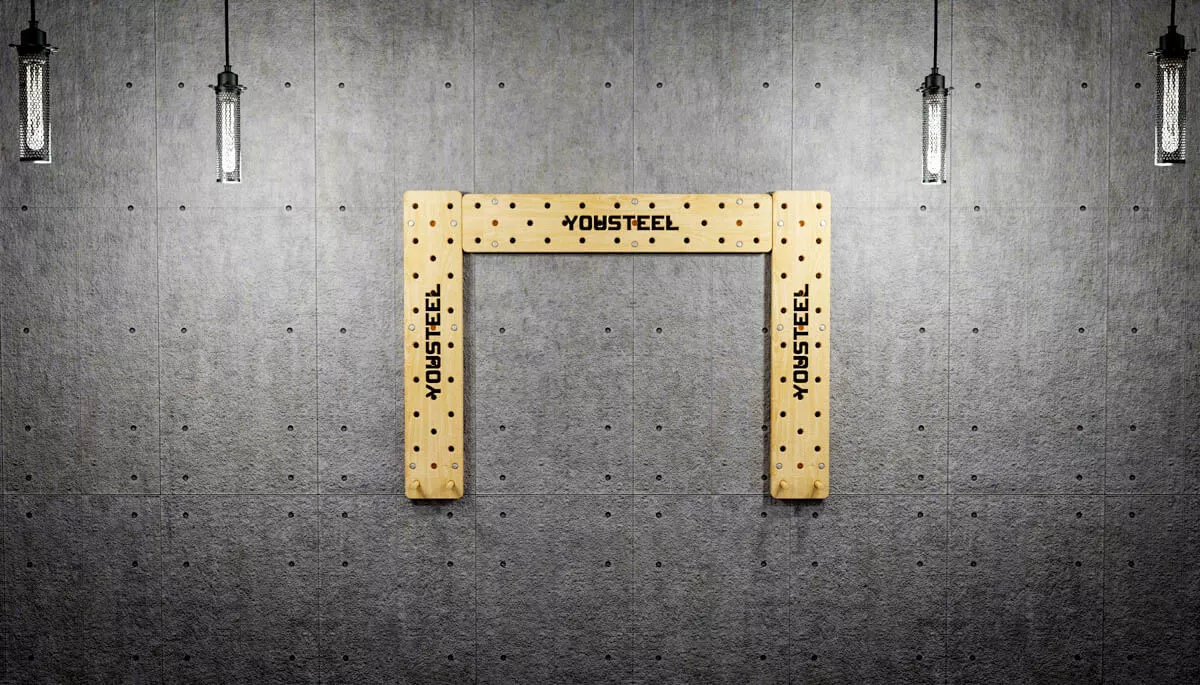 Пегборд, в оригинале Стена Коркина, это эффективный инструмент развития силы и ловкости рук. Конструкция простая – это деревянный щит с высверленными отверстиями и пара ручек. Мы предлагаем 4 варианта размера: 880х300, 880х480, 1600х300, 2320х300. Каждый сможет сконструировать подходящую по размерам и сложности стену для лазания. Если хотите разнообразиться тренировки, то можете сформировать из отдельных частей фигуры и использовать их как дорожки для лазания.