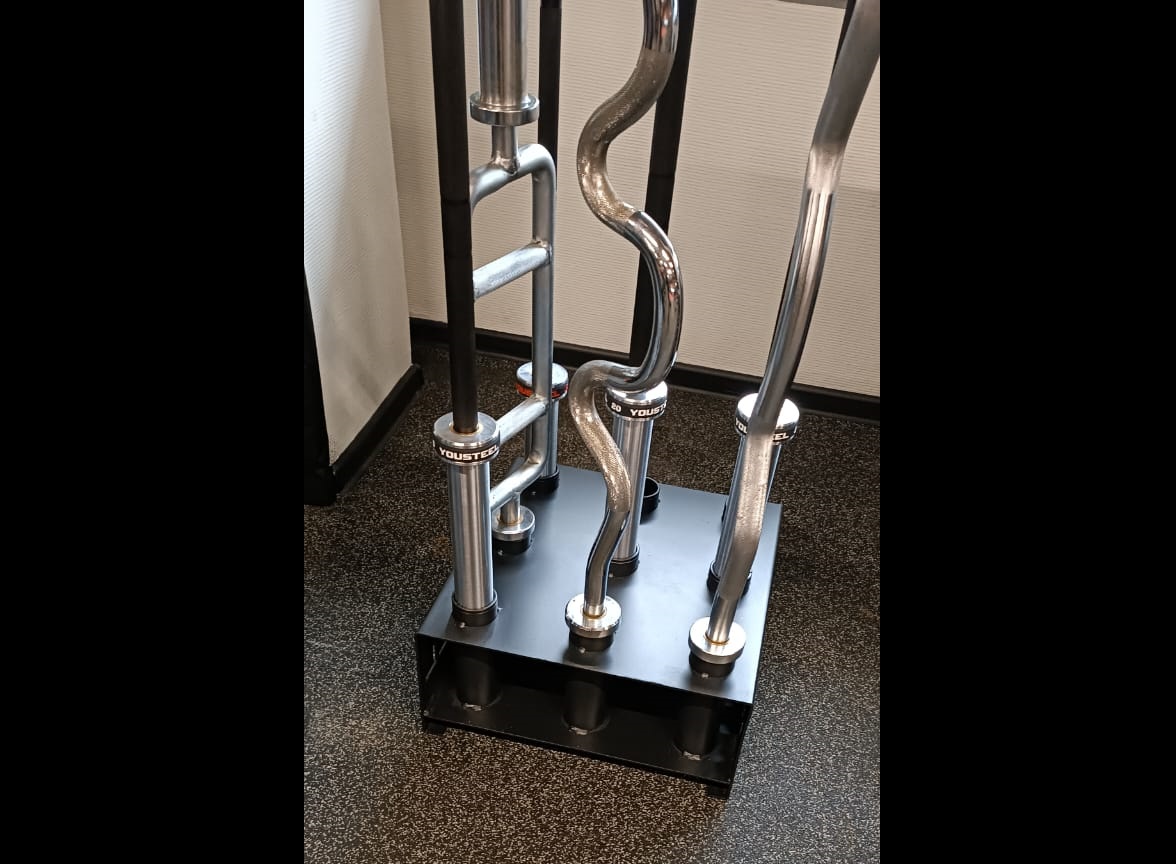 Напольная подставка для вертикального хранения грифов отличный вариант для клубов, где нет возможности крепить кронштейны к стенам. С этой подставкой вы сможете компактно разместить 9 грифов и они займут минимум места. Подставка для грифов выполнена из листа металла, на который наварены трубы диаметром 60мм для удержания грифов. Верхний край труб покрыт пластиковой накладкой, которая защитит рукава грифа при интенсивном использовании.