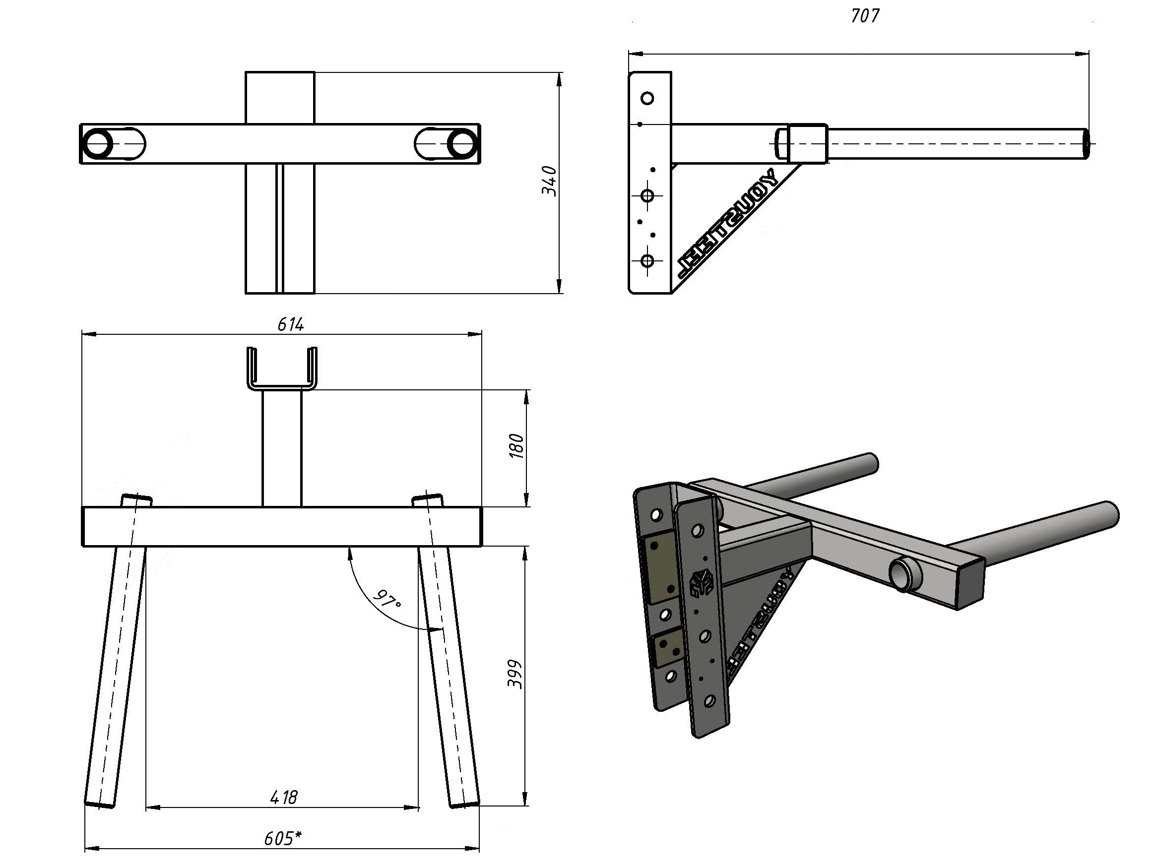 Брусья совместимы со стойками функциональных рам, которые имеют профиль 60х80мм. Также профиль должен быть перфорирован отверстиями диаметром 17мм под страховочный штырь. Мы не можем гарантировать совместимость наших навесных элементов с конструкциями других производителей, но отталкиваясь от параметров совместимости вы можете понять подойдут ли вам данные навесные элементы.