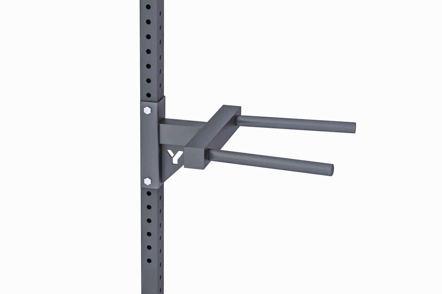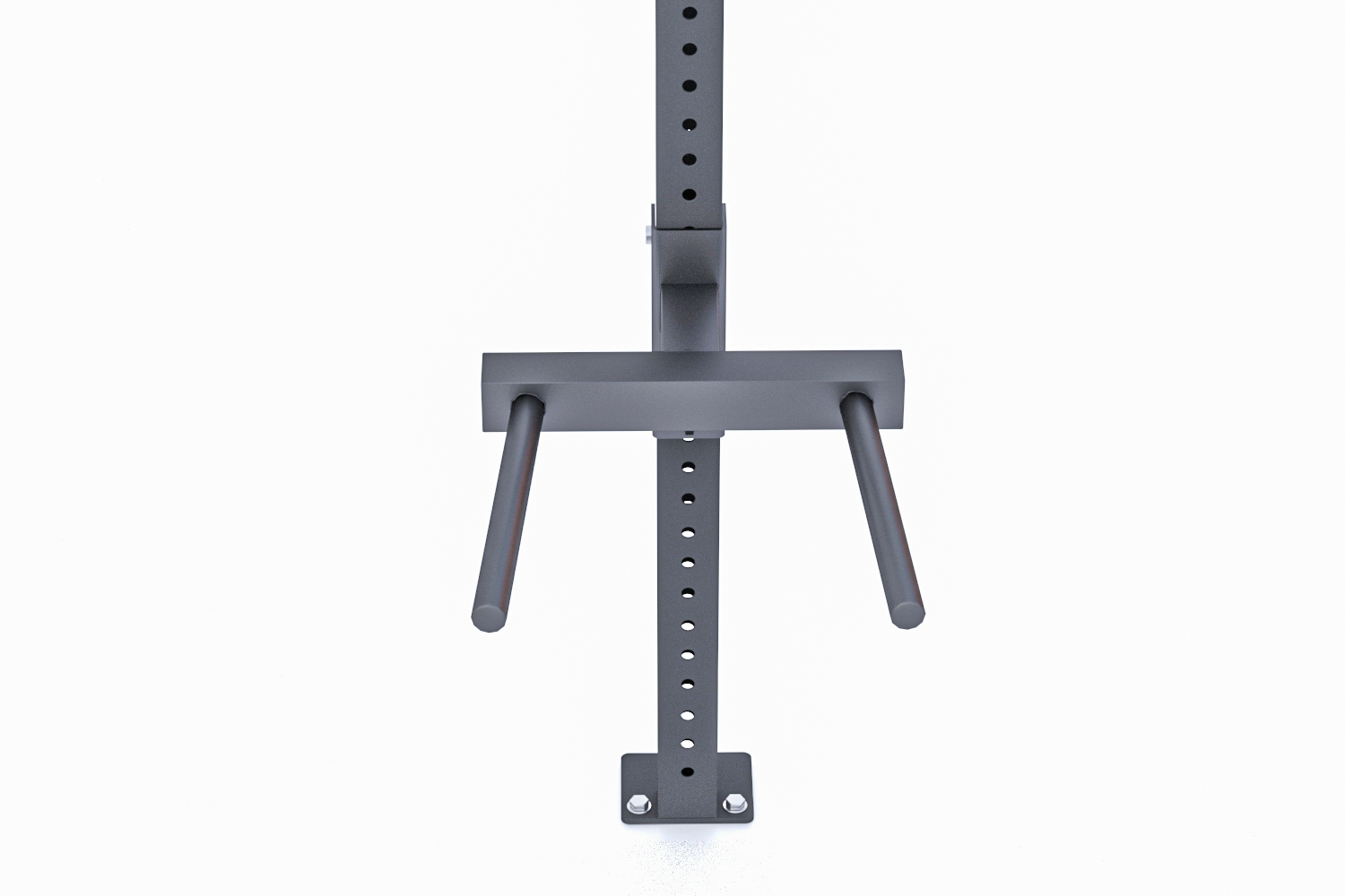 Ручки брусьев расходятся под углом, что позволит комфортно заниматься атлетам любого роста. Диаметр трубы ручек – 50мм. Поверхность, покрытая порошковой краской, обеспечивает отличное сцепление и хорошо удерживает магнезию. Брусья выполнены в едином стиле с функциональной рамой и гармонично дополнят ее.