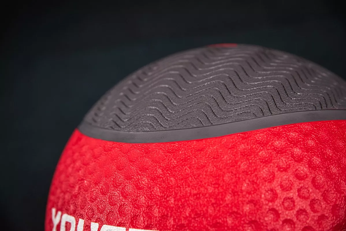 Тренировочный мяч имеет жесткую оболочку и выполнен из каучука. Поверхность мяча имеет специальный протекторный рисунок, который позволяет комфортно удерживать мяч даже если ваши ладони сильно вспотели. Для простоты ориентации каждый снаряд имеет цифровое обозначение веса и цветную вставку. Занимающимся следует быть аккуратными, т.к. мяч имеет высокую степень отскока при ударах о поверхности.