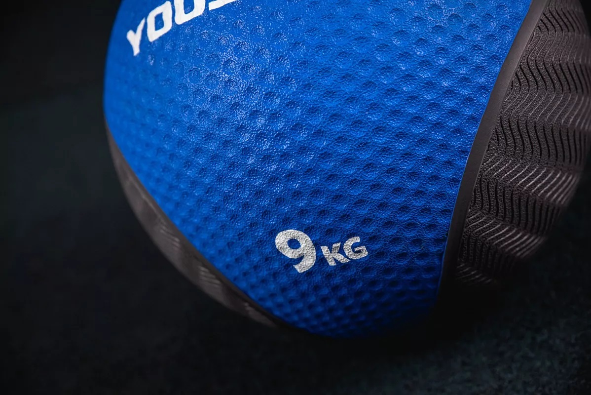 Тренировочный мяч имеет жесткую оболочку и выполнен из каучука. Поверхность мяча имеет специальный протекторный рисунок, который позволяет комфортно удерживать мяч даже если ваши ладони сильно вспотели. Для простоты ориентации каждый снаряд имеет цифровое обозначение веса и цветную вставку. Занимающимся следует быть аккуратными, т.к. мяч имеет высокую степень отскока при ударах о поверхности.