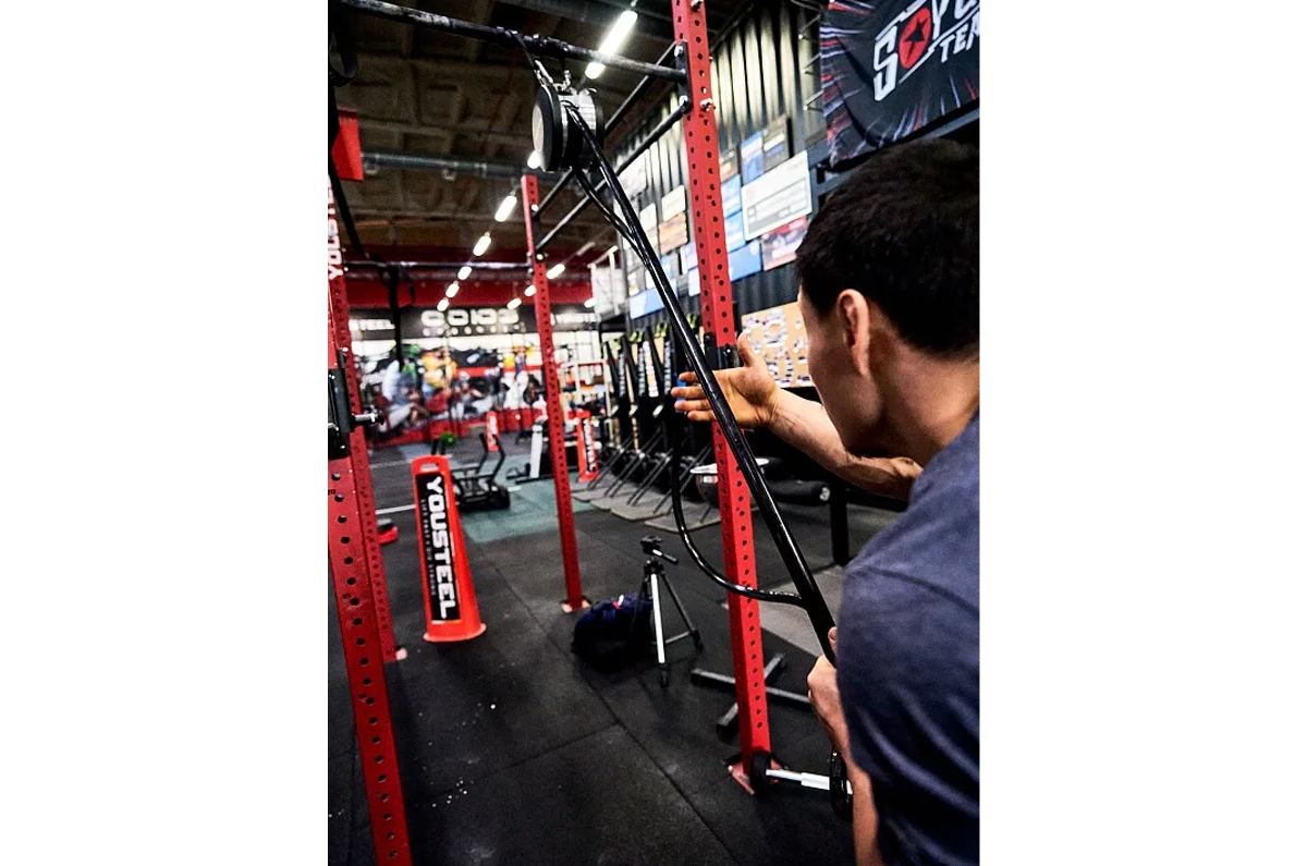 Разнообразие упражнений с канатным тренажером достигаются путем различных вариантов крепления тренажера. И новички, и профессиональные спортсмены могут проводить эффективные тренировки для увеличения силы, выносливости и мышечной координации. В зависимости от уровня подготовки пользователя интенсивность каждого упражнения может регулироваться при помощи регулятора сопротивления. Таким образом, для каждого уровня подготовки может быть подобрано индивидуальное сопротивление. Путем изменения захвата вы можете варьировать нагрузку на различные группы мышц. Если выполнение упражнения одной рукой становится затруднительным, вы можете использовать обе руки, чтобы облегчить его. При чередовании движения обеими руками вам необходимо выполнять движение плавно, чтобы тренажер не раскачивался из стороны в сторону. Некоторые движения с чередованием рук выполняются более комфортно, если «свободная» рука удерживает канат, чтобы облегчить его захват «рабочей» рукой. Во время выполнения упражнений займите устойчивое положение, которое обеспечивает стабильность и баланс.