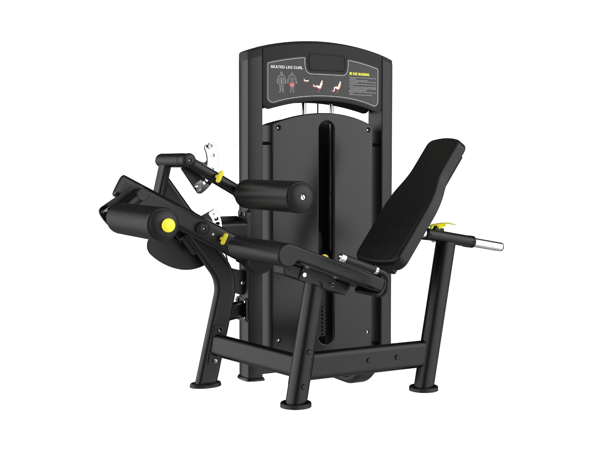 Сгибание ног сидя — это профессиональный грузоблочный тренажер. Рабочий вес стеков составляет 80кг. Каркас выполнен из толстостенного стального профиля 3мм и сварен на современном лазерном оборудовании. Удобное сиденье и спинка из пенополиуретана обтянуто искусственной кожей, спинка имеет трещоточный механизм для быстрой регулировки.