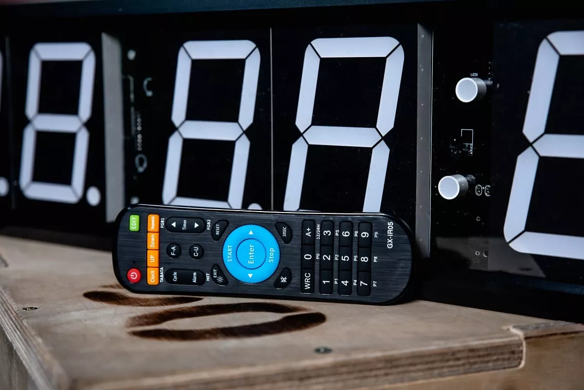 Таймер работает от сети 220в. Его корпус выполнен из прочного пластика, а на 2-цветном светодиодном дисплее информация хорошо видна даже с расстояния более 20 метров. Для удобства использования в комплекте с таймером идёт пульт, но вы также можете управлять им с помощью телефона, скачав приложение «GX Remote». Это приложение позволяет управлять таймером YOUSTEEL прямо с телефона, поэтому вам не придётся постоянно держать пульт при себе. Таймер легко и надёжно крепится на стену. В комплекте есть 2 небольших кронштейна, которые крепятся по углам таймера. Длина кабеля блока питания составляет 3 метра.