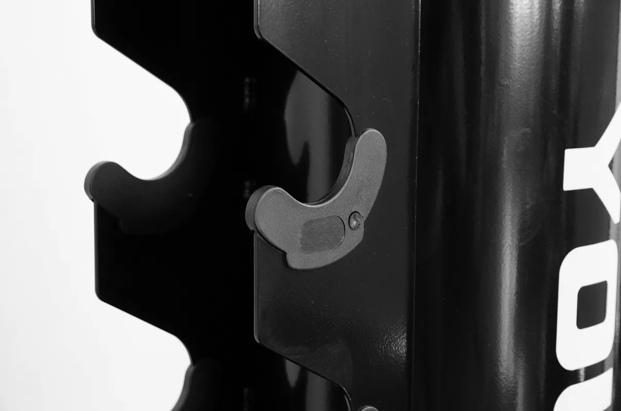 Стойка способна вместить 10 пар гантелей, весом от 1 до 10кг. Ложементы обрамлены пластиком и предотвратят повреждения рукоятей гантелей. Это отличный компактный вариант с габаритными размерами 500х460х1220мм