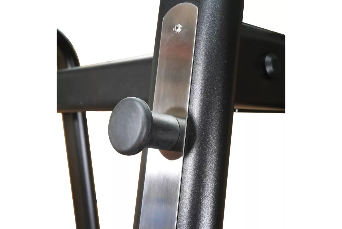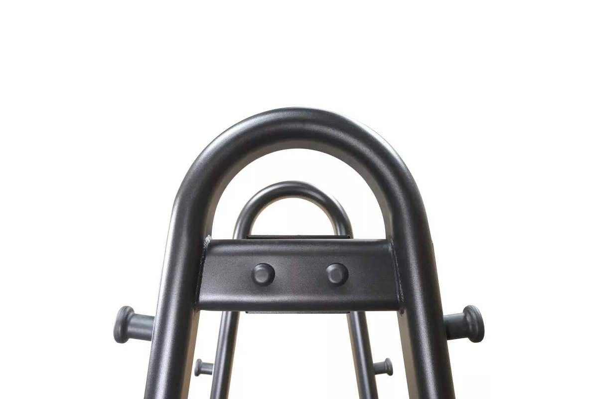 Стойка предназначена для организации хранения в коммерческих и домашних залах. Она изготовлена из овальной стальной трубы сечением 40х80мм и толщиной 2мм. Габаритные размеры: 920x870x1680мм. Вес: 39кг. Расстояние между крюками 730мм. Предназначена для хранения 10 штанг.
