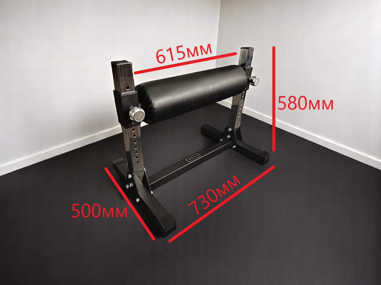 Стойка-роллер — удобное и компактное решение для выполнения болгарских приседов, а ещё вы можете делать в нём ягодичный мостик, т.к. мы специально увеличили длину ролика до 600мм. Имеется возможность регулировки по высоте от 21см до 50.5см, шаг регулировки 2.5см. Вес изделия 13.5кг.