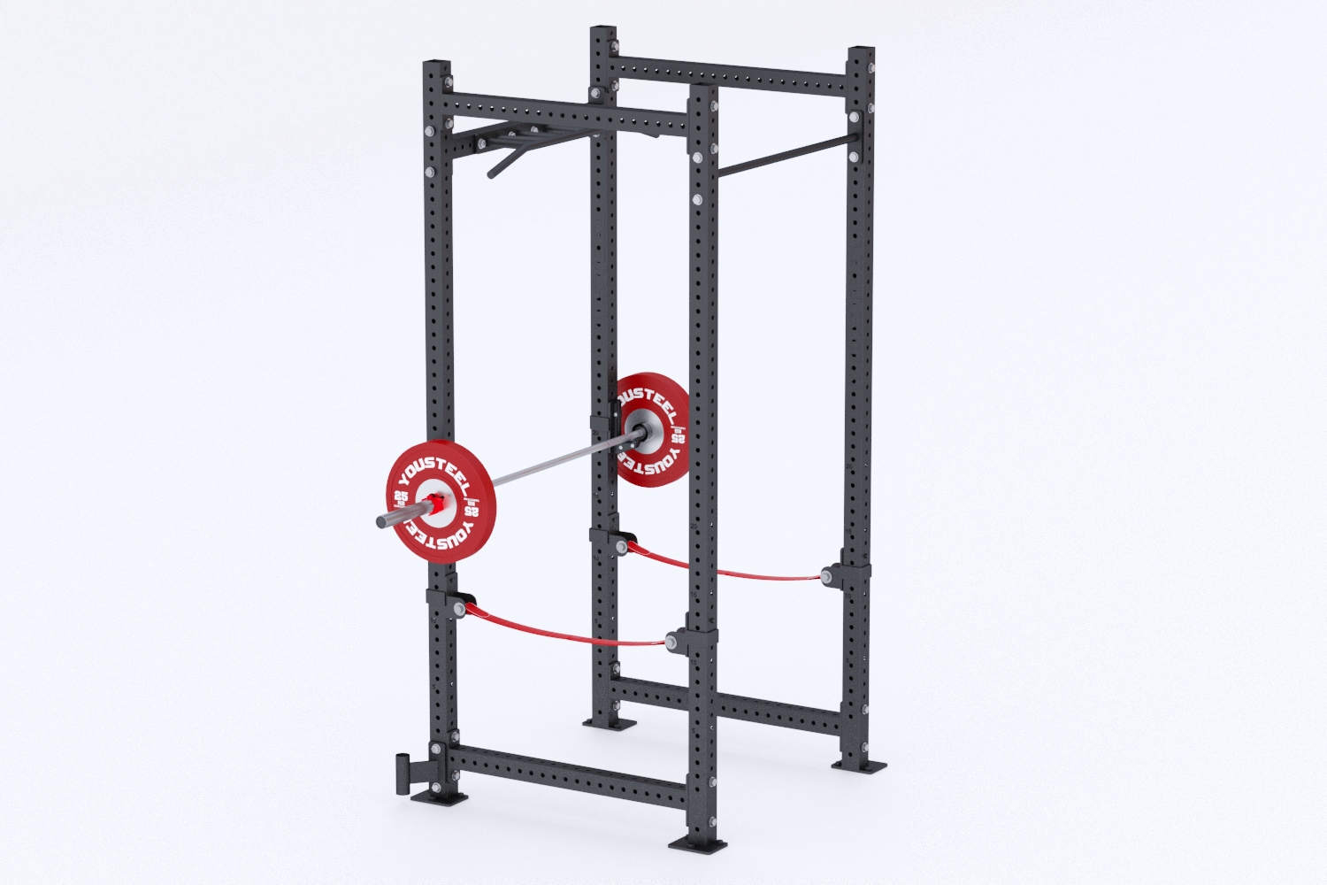 Упоры выполнены из высокопрочной нейлоновой стропы. Упоры предназначены для подстраховки атлета, чтобы на них можно было положить штангу. Они не предназначены для того, чтобы снаряд на них скидывали с большой высоты. Это может повредить как упор, так и стойку.