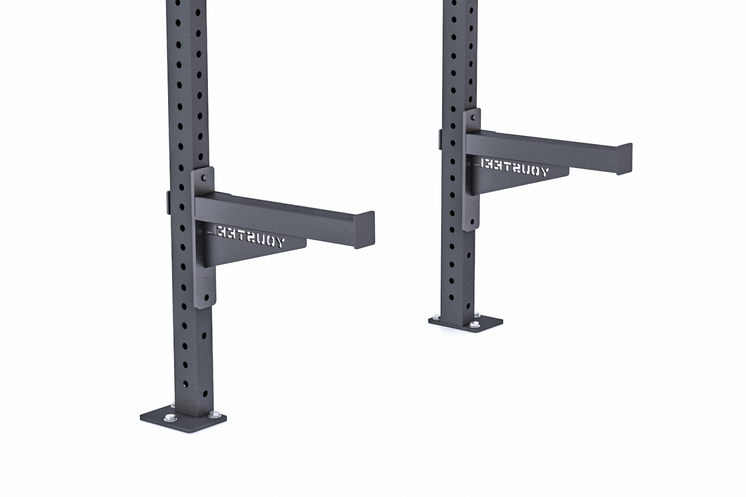 Страховочные упоры быстро и легко устанавливаются на функциональную раму и предназначены для обеспечения безопасности тренировок. Если атлет тренируется самостоятельно и выполняет упражнения с максимальными весами, ему необходимо обеспечить безопасный способ освободиться от снаряда в случае неудачной попытки. Для этого использую страховочные упоры.