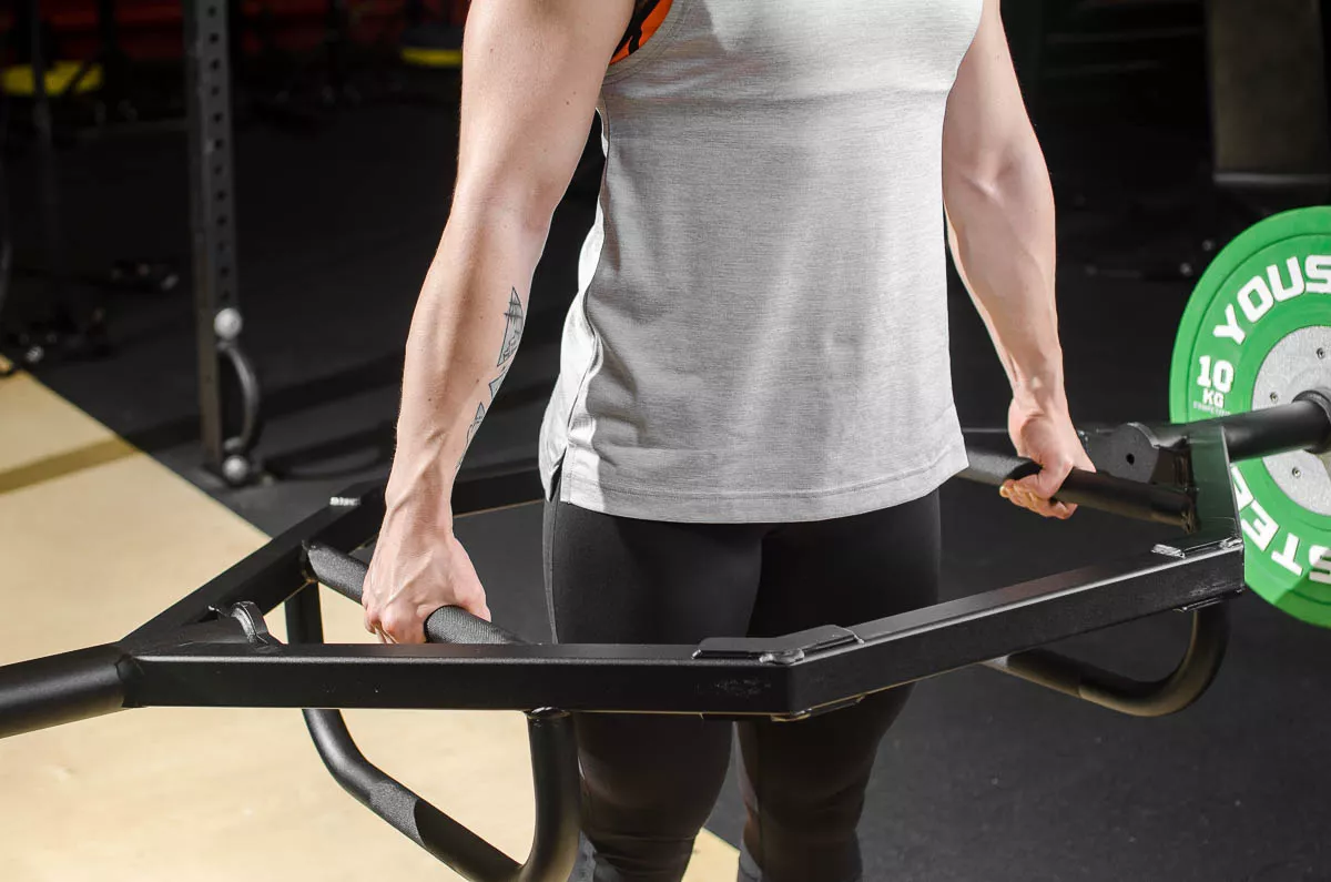 Трапециевидный гриф, также известный как трэп-гриф, имеет шестигранную форму. Этот снаряд был изобретен в середине 80-х пауэрлифтером Элом Герардом, чтобы выполнять становую тягу без боли в спине.