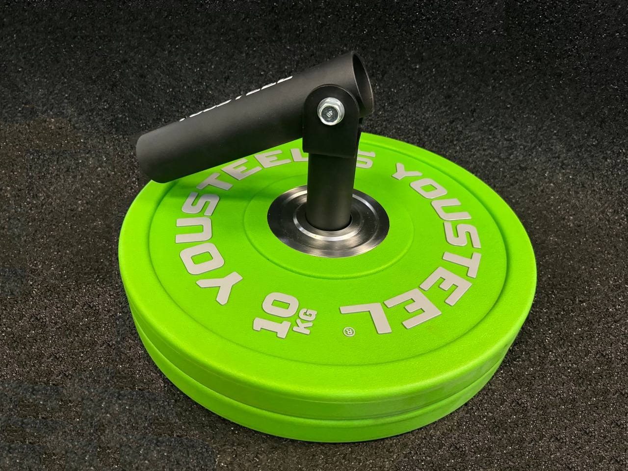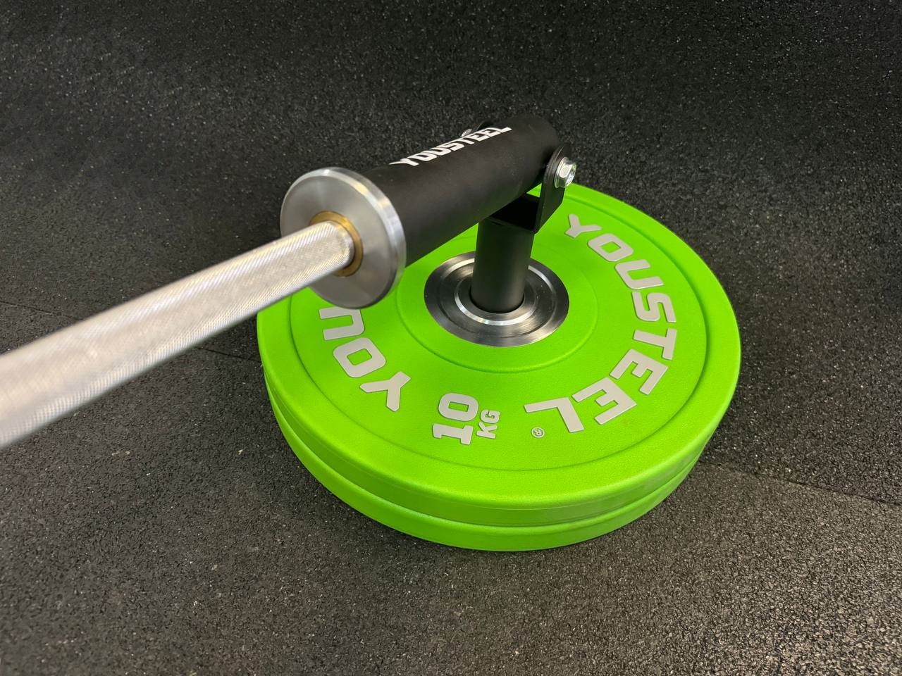 Тяга грифа лэндмайн – это приспособление, которое вставляется в диски и позволяет вам получить позицию для работы с грифом. Изделие представляет собой полый цилиндр, который через шарнир крепится к основанию, которое вставляется во втулку дисков. Шарнир позволяет крутить штангу на 360 градусов. Этот тренажер позволяет одновременно тренировать силу и функциональность. При этом будет увеличиваться и мышечная масса. То есть мы получим сразу три эффекта сразу. Так же в большинстве упражнений в работу активно включаются мышцы кора.