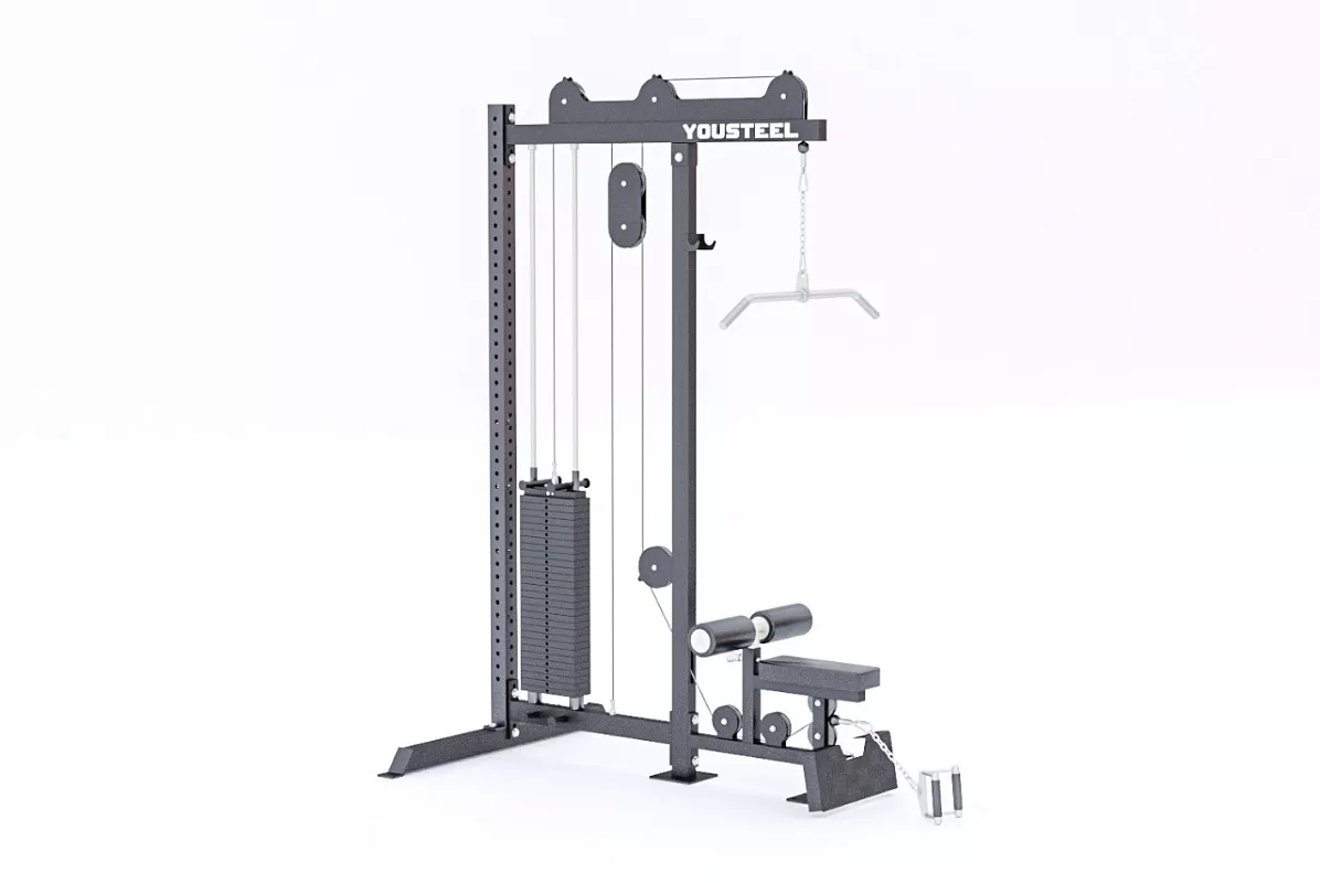 Для установки тяги блока как отдельное изделие, его необходимо крепить на Т-образную стойку, которую вы найдете по ССЫЛКЕ. Без задней Т-образной стойки тягу блока можно закрепить к стойке функциональной рамы и тем самым расширить функционал рамы, либо закрепить на анкерные болты в стену.