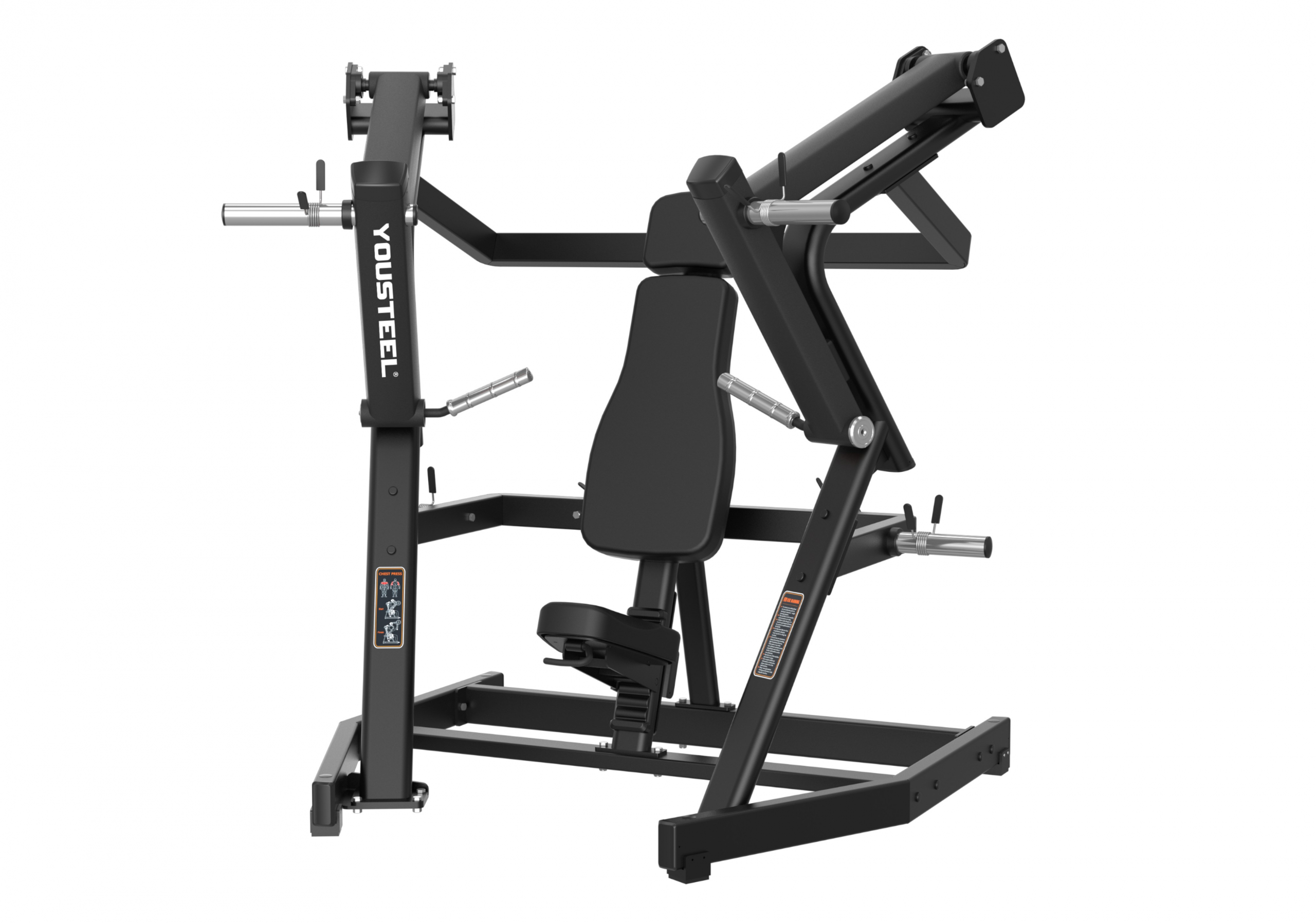 Жим от груди — это профессиональный тренажер нагружаемый дисками. Имитирует жим штанги от груди и отлично подойдет для развития грудных мышц, а также поможет проработать дельтовидные и мышцы рук. Независимое движение рычагов моделирует естественную траекторию движения и позволяет работать как двумя, так и одной рукой. Рукояти из алюминия имеют насечку для надежного хвата. Каркас выполнен из толстостенного стального профиля 3мм и сварен на современном лазерном оборудовании. Удобное сиденье из пенополиуретана обтянуто искусственной кожей и имеет трещоточный механизм для быстрой регулировки по высоте. Толщина подушек 60мм. Четыре хромированных кронштейна для хранения дисков под посадочный диаметр 50мм. Втулки кронштейнов для дисков расположены под небольшим углом, для предотвращения скатывания дисков во время работы и хранения. Резиновые амортизаторы на рычагах предотвращают повреждение покрытия при резком опускании рычагов и смягчают конечную точку выполнения упражнения. Максимальная весовая нагрузка до 300кг.