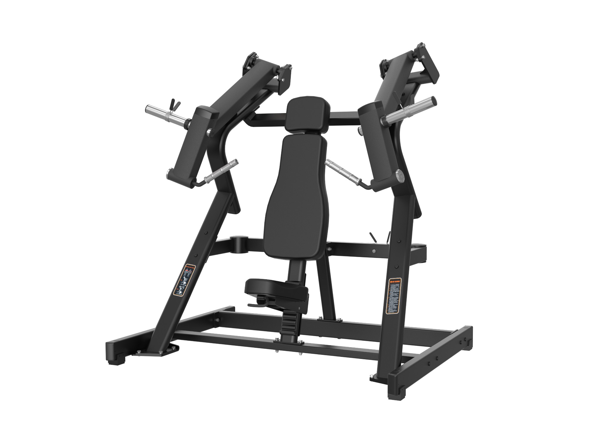 Жим от груди с наклоном — это профессиональный тренажер нагружаемый дисками. Имитирует жим штанги от груди под углом и отлично подойдет для акцентной проработки верхней части грудных мышц, а также поможет проработать дельтовидные и трехглавой мышцы плеча. Независимое движение рычагов моделирует естественную траекторию движения и позволяет работать как двумя, так и одной рукой. Рукояти из алюминия имеют насечку для надежного хвата. Каркас выполнен из толстостенного стального профиля 2.5мм и сварен на современном лазерном оборудовании. Удобное сиденье из пенополиуретана обтянуто искусственной кожей и имеет трещоточный механизм для быстрой регулировки по высоте. Два хромированных кронштейна для хранения дисков под посадочный диаметр 50мм. Втулки кронштейнов для дисков расположены под небольшим углом, для предотвращения скатывания дисков во время работы и хранения. Резиновые амортизаторы на рычагах предотвращают повреждение покрытия при резком опускании рычагов и смягчают конечную точку выполнения упражнения. Максимальная весовая нагрузка до 300кг.